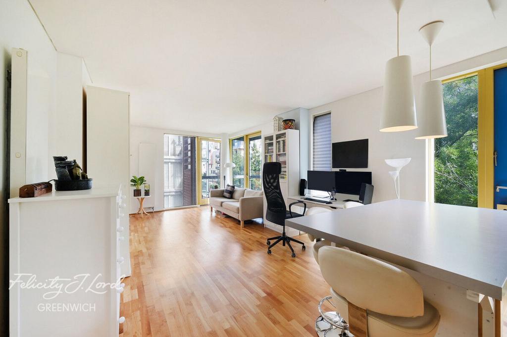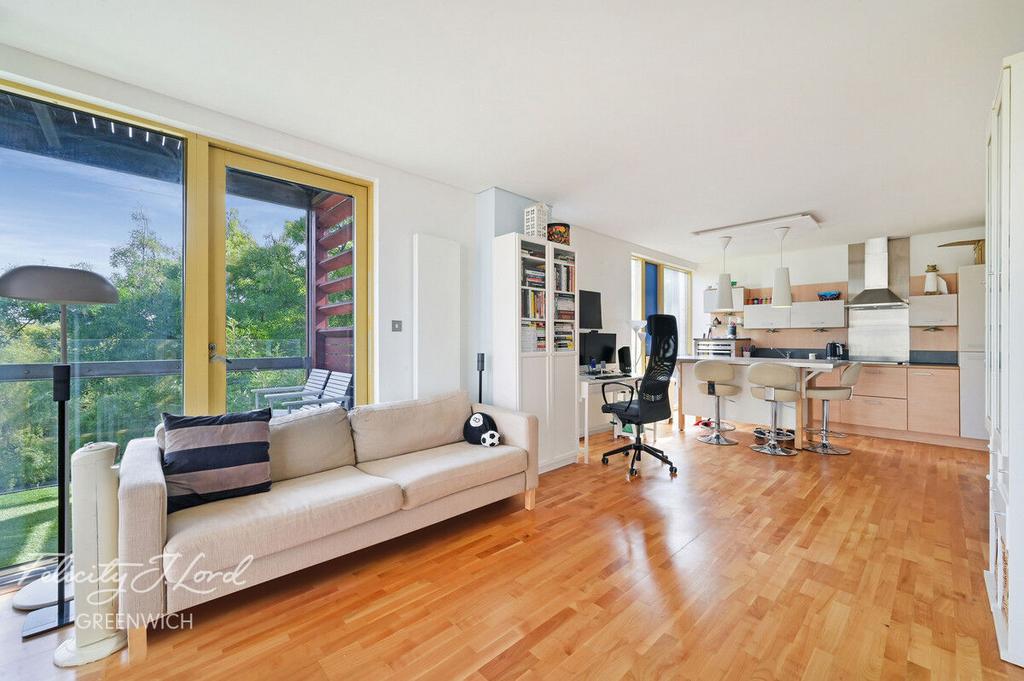Introducing this very spacious one-bedroom apartment in the vibrant and historic area of North Greenwich. Boasting 628 sq. ft overall, this apartment features a wrap-around balcony offering pleasant views of the park. The large windows flood the living room with natural light, creating a bright and airy space. The open-plan kitchen comes equipped with modern appliances, and the separate bathroom and hallway offer ample storage. The bedroom includes designer and customised wardrobes with embedded mirrors and lights, adding a touch of luxury and practicality to your living space.