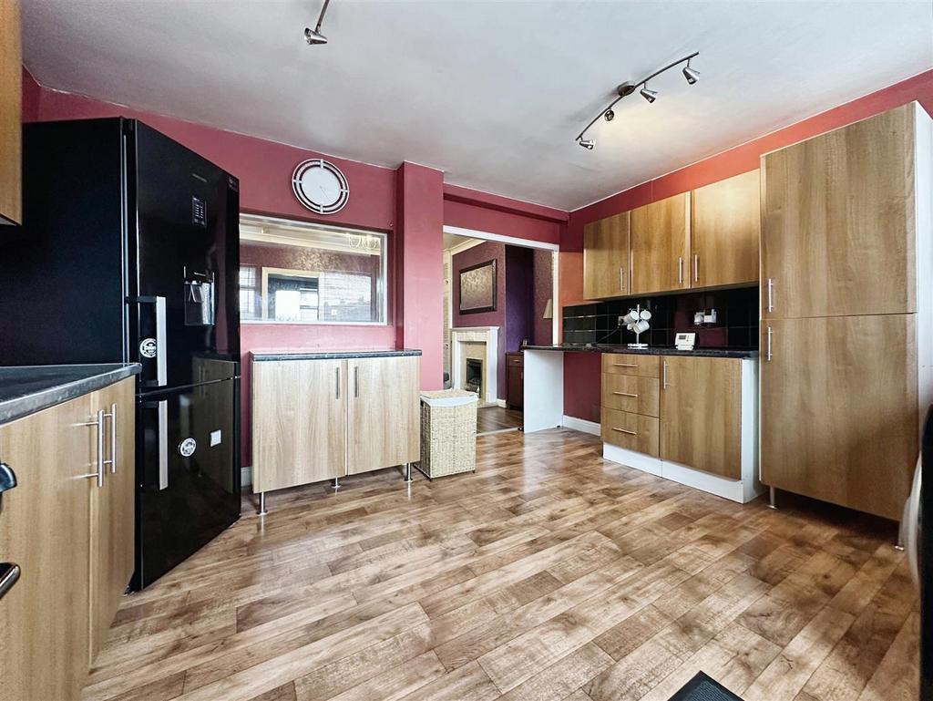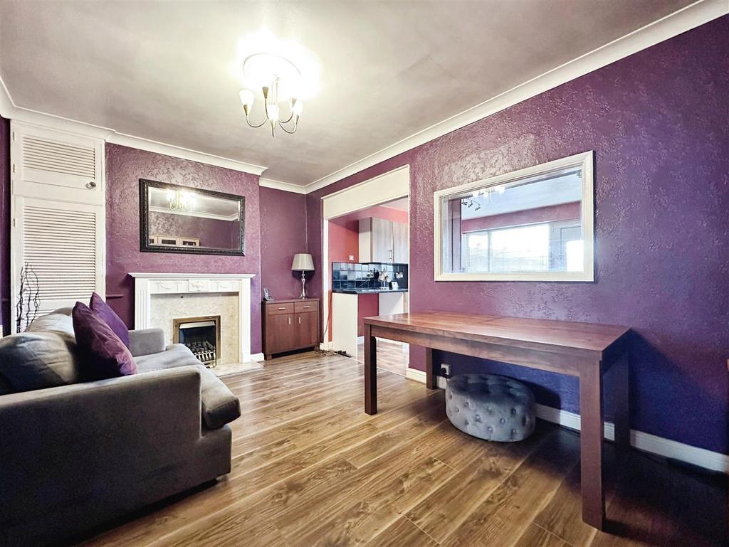 Dining Room - 4.71m x 3.88m (15'5" x 12'8") - Understairs storage cupboard, alcove storage, fireplace housing gas fire, laminate flooring, radiator and opening up into the kitchen.