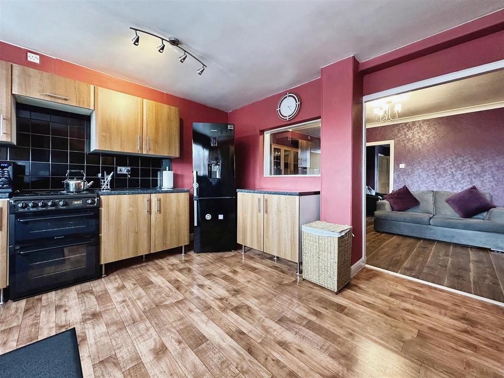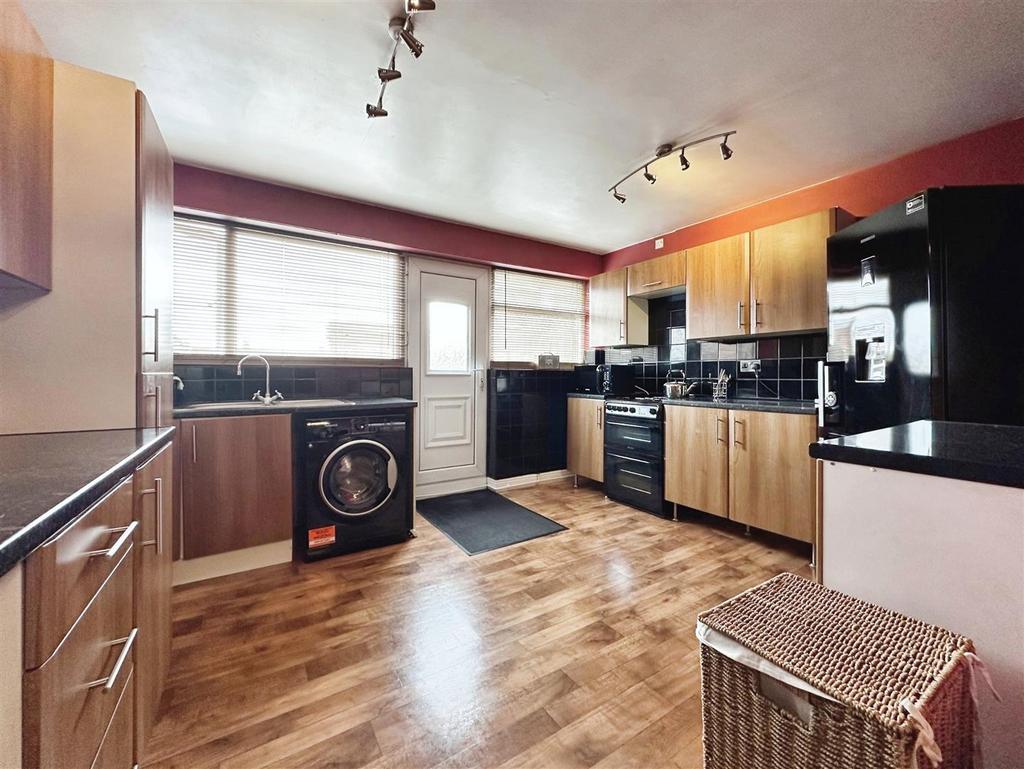 Kitchen - 4.04m x 3.38m (13'3" x 11'1") - Fitted with a range of base and wall mounted units, laminated worktops, tiling to splashback areas, stainless sink unit, space for freestanding cooker, plumbing for automatic washing machine, UPVC double glazed window and door to the rear.
