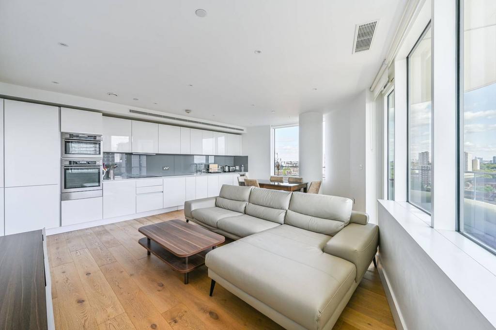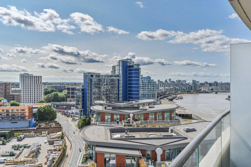 This excellent 10th floor apartment offers 2 double bedrooms with the main featuring built in storage, spacious open plan reception, and amazing views across the City and the River Thames from the large private balcony.