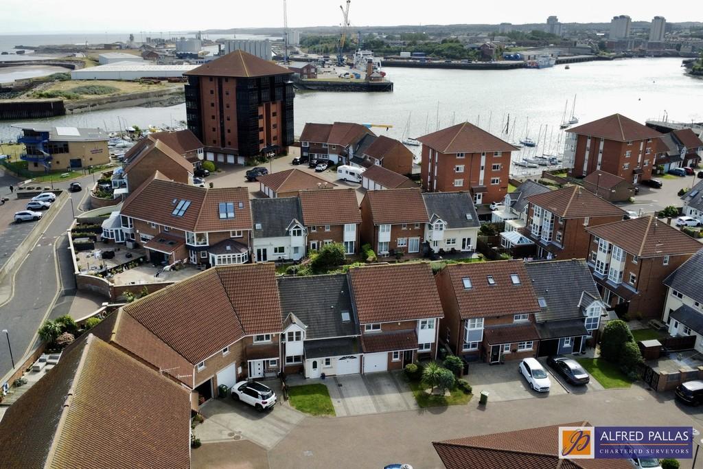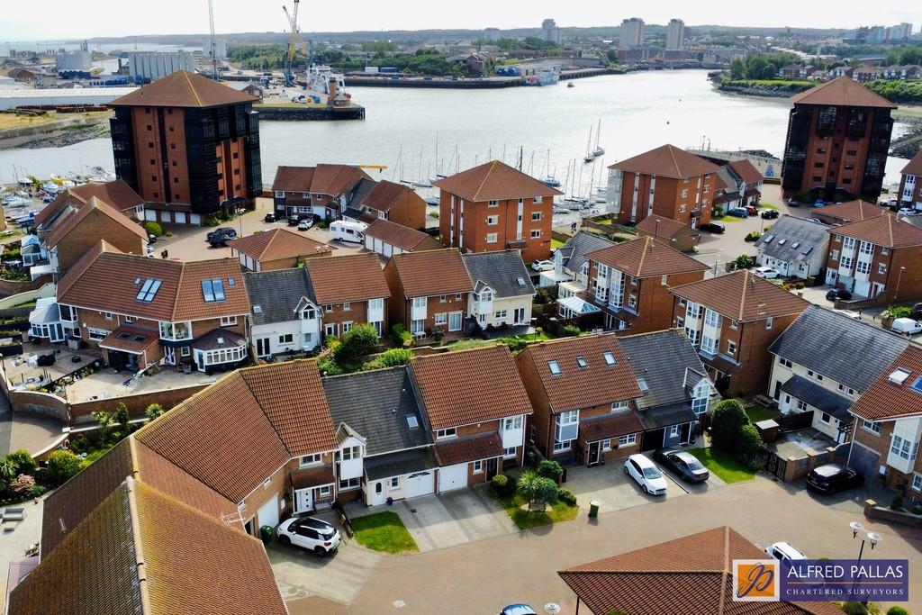 On this sought-after modern Marina development in a quiet cul-de-sac location, an opportunity to purchase a tastefully presented mid link house providing generously proportioned family accommodation with the benefit of very pleasant views across the mouth of the river with the sea beyond. Perfectly placed for access to the excellent amenities of the area including local bars and restaurants, the National Glass Centre and Sunderland University's St Peter's campus, the property is also ideally located to take advantage of lovely riverside and seafront walks and nearby beaches. The original ground floor layout of the property has been carefully modified to provide a very generously proportioned, beautifully appointed kitchen/diner, together with a useful cloakroom leading through to a small car integral garage. In addition there is a spacious open-plan main reception room, a uPVC double glazed conservatory and there are three first floor double bedrooms with a re-fitted modern en-suite shower room and particularly pleasant views from the bay to the main bedroom, together with a stylishly appointed family bathroom. Externally there is a lovely south facing rear garden with a lawn, paved areas and mature planting perfectly suited to relaxing or outside dining and there is ample driveway parking to the front. This is a fine, spacious family home in an attractive location and internal inspection is highly recommended. It comprises: hall, lounge/dining area, kitchen/diner, cloakroom/wc, 3 bedrooms (main bedroom with modern en-suite shower room and feature bay window overlooking the garden and providing attractive river and sea views), re-fitted family bathroom, gas CH, uPVC double glazing, carpets included, reduced size garage, ample driveway parking, very pleasant rear garden. No upward chain.