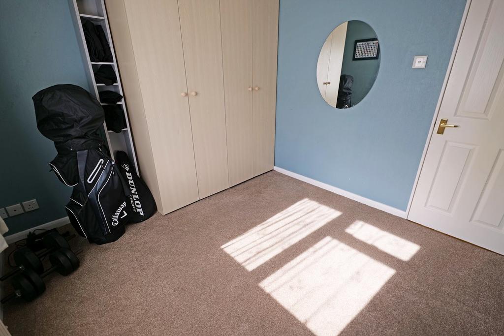 Providing a second double bedroom, with built-in double wardrobes a pvc double glazed window and a radiator.