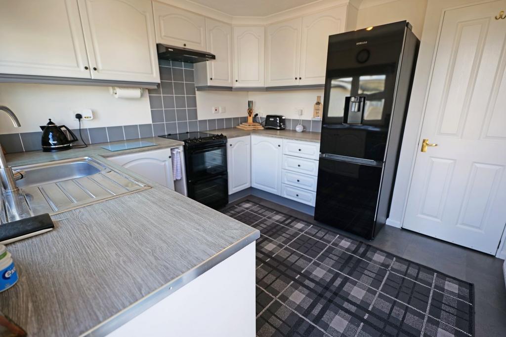 Fitted with white units and drawers, laminate worktops and tiled splashbacks and a single drainer sink with a mixer tap. Electric cooker point and an extractor canopy over, plumbing for a washing machine, pvc double glazed window and pvc double glazed frosted glass external door. There is a useful built-in storge cupboard with sliding door and fitted shelves and houses the gas condensing combination boiler.
