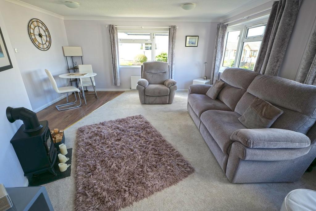 The charming gardens surrounding the park home are a really lovely feature, consisting mainly of rockeries and flowerbeds, stocked with a variety of mature shrubs and plants, pebble covered spaces and an artificial grass covered area, perfect for ‘al fresco’ dining or sitting and soaking up the sun in the summer months. A paved pathway gives access around the park home and there is an especially useful shed/outbuilding with electric power and light. A concrete hardstanding facilitates off road parking for one car, with extra parking for visitors immediately to hand.