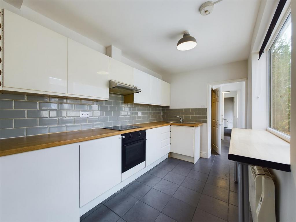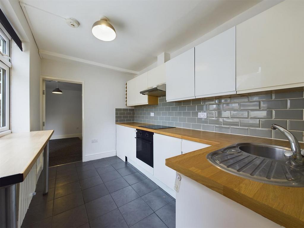 Kitchen - 3.525 x 2.213 (11'6" x 7'3") - Base and eye level units with roll edge work surfaces, tiled splash backs and an inset stainless steel sink and drainer. Fitted oven, hob with extractor over, space for a fridge freezer. Tiled flooring, PVC side window, electric radiator and a light fitting.
