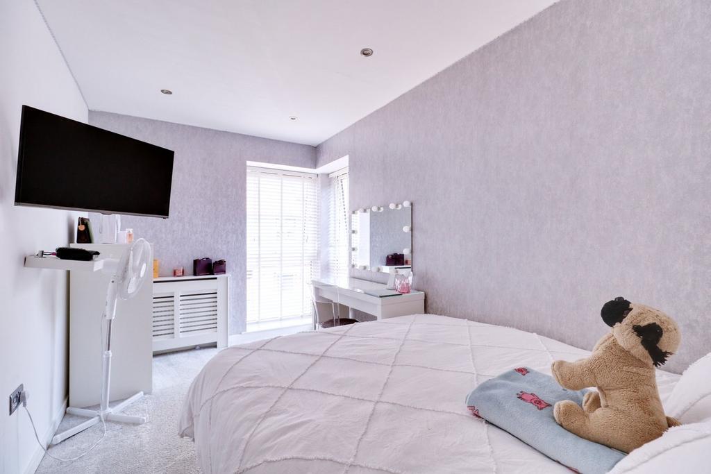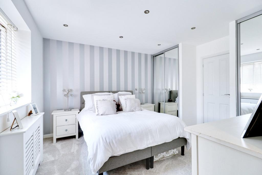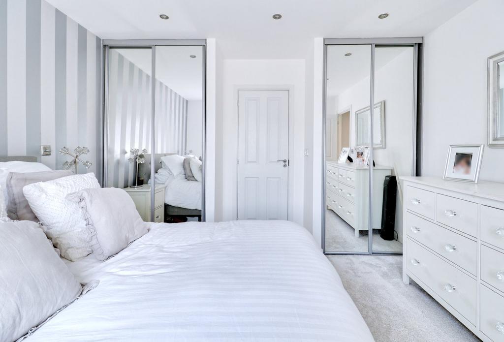 3.86m x 3.57m (12' 8" x 11' 9") Inset spotlights to ceiling, double glazed windows to rear, radiator, two single built-in storage cupboards with sliding mirror doors, fitted carpet.