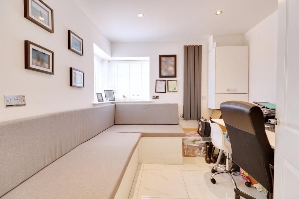2.86m x 2.75m (9' 5" x 9' 0") Inset spotlights to ceiling, double glazed windows to front, built-in seating/potential bed (can be removed), gun-metal grey vertical radiator, wall unit housing boiler, porcelain tiled flooring.