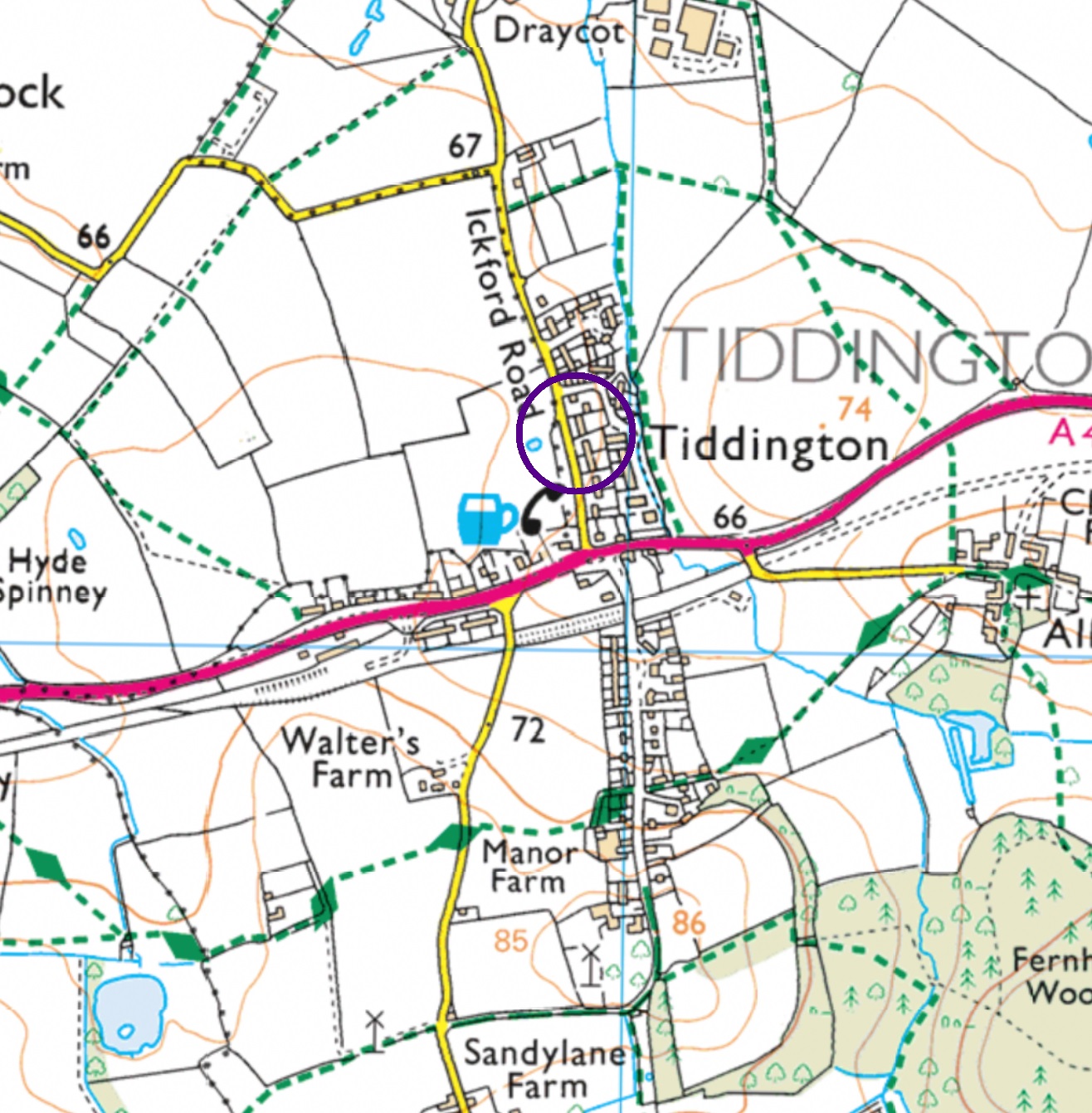 About half way between Oxford and Thame, and just 2 miles from junction 8a of the M40, Tiddington is well connected both by road and public transport. The 280 Bus service from Oxford to Aylesbury via Thame stops in the village, and Haddenham & Thame Parkway Station is a 6 mile drive. The village is on the edge of the Oxford Green Belt, and is surrounded by pretty farm land, with many footpaths and bridleways, including the Oxfordshire Way footpath, which passes through the village. Waterstock and The Oxfordshire golf courses are within three 3 miles. There is a thriving village cricket club, village hall, church at Albury and the Village Pub, the excellent Fox & Goat.