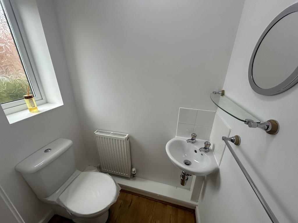 Upvc double glazed frosted glass window to the front elevation. Two piece suite comprising of a wash hand basin and a low flush W.C. Wooden flooring. Ceiling light point and a radiator.