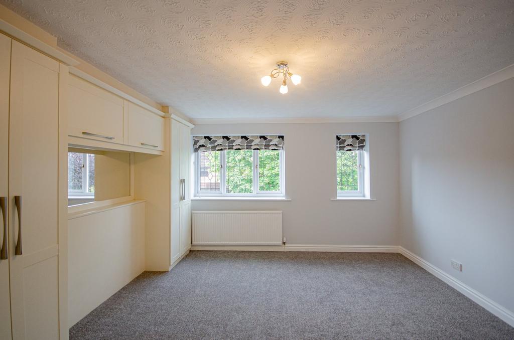 Fitted bedroom suite with wardrobes and matching cupboards, two PVCu double glazed windows to front, radiator, door to: