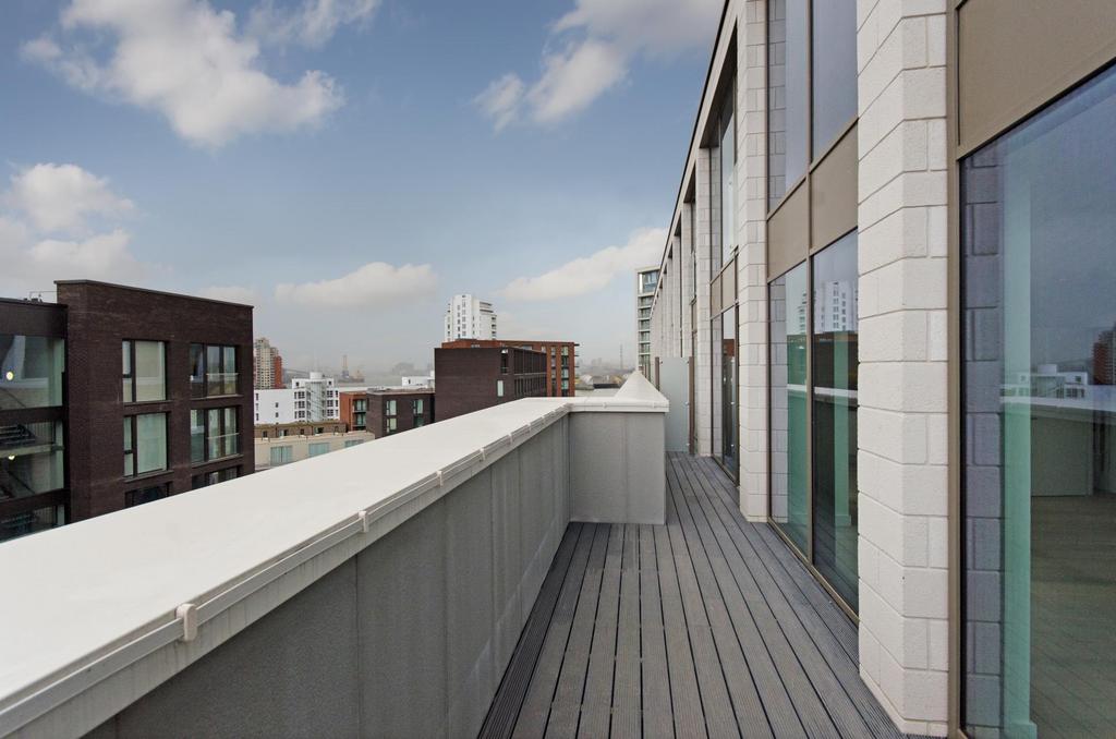 The property is located on the seventh floor and eighth floor and spans over 1035 sq ft. It comprises of stunning fully integrated open plan kitchen, lovely large reception room with direct access on to a very large private balcony overlooking landscape communal gardens, two double bedrooms both with built in wardrobes and the master benefiting from a luxury en-suite shower room. There is also a family bathroom suite located off the hallway.