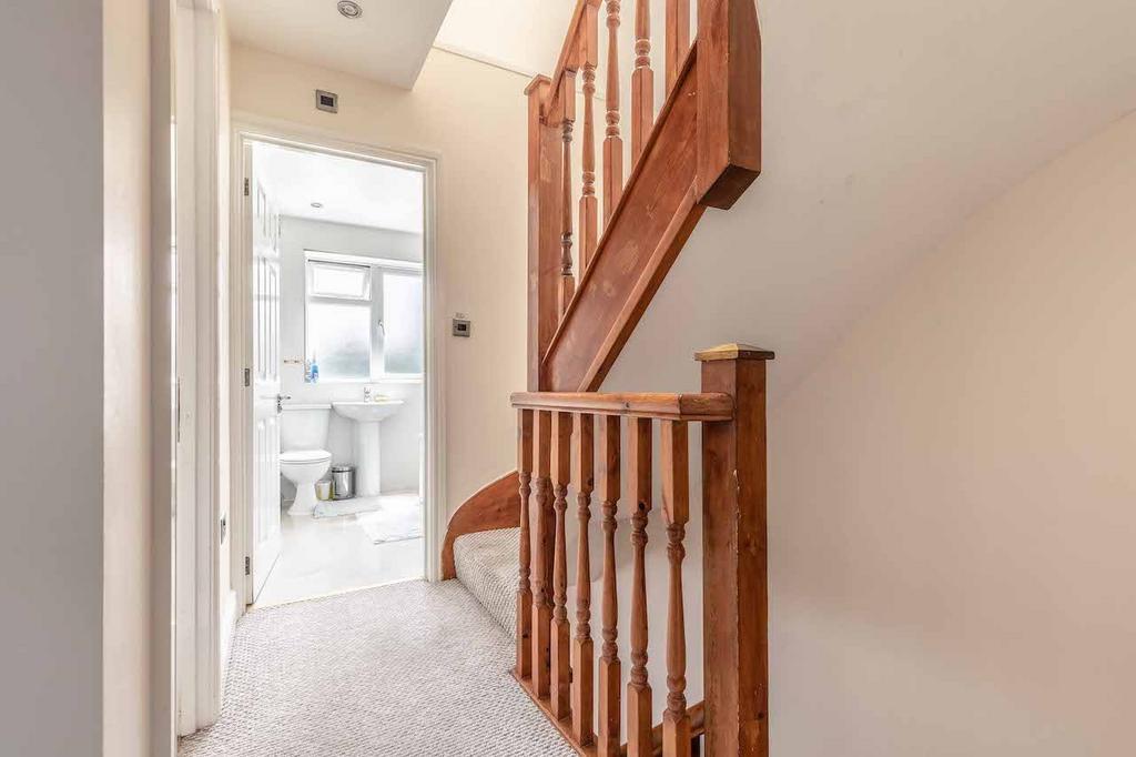 First floor landing, carpet flooring stairs leading to second floor and doors leading to bedrooms 2, 3, 5 and family bathroom.