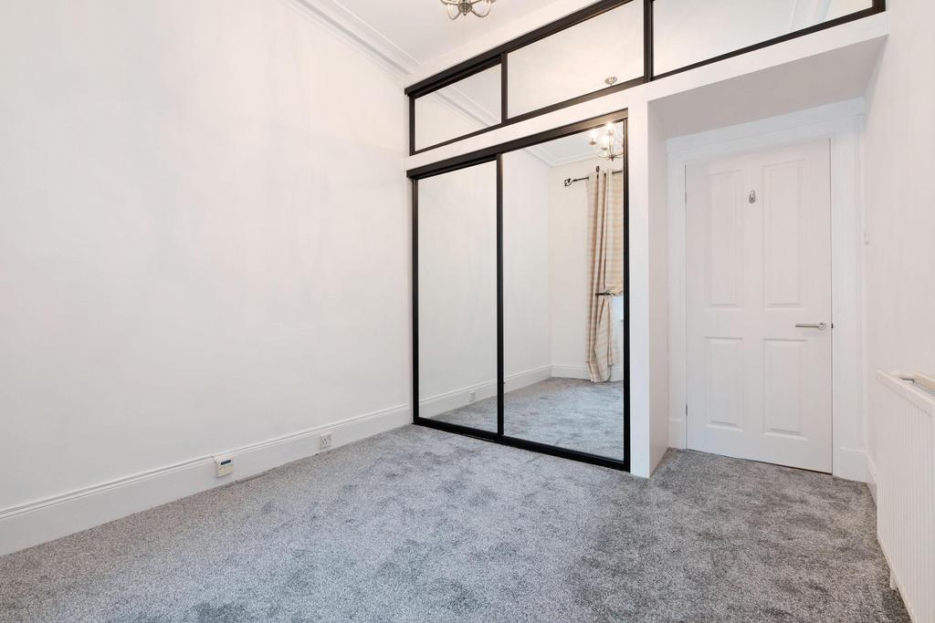 Accessed via the rear vestibule, an ideal small double guest bedroom or a large home office. Neutrally decorated and a new grey carpet. Side facing window and a white gas mains radiator. Mirrored wardrobe with hanging rails and shelving within.
