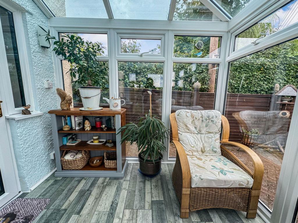 The spacious sitting room, with its feature fireplace, is perfect for cosy evenings. This room flows seamlessly into the light-filled conservatory, where you can unwind while taking in the stunning views of Eastbury Hill and the beautiful garden.