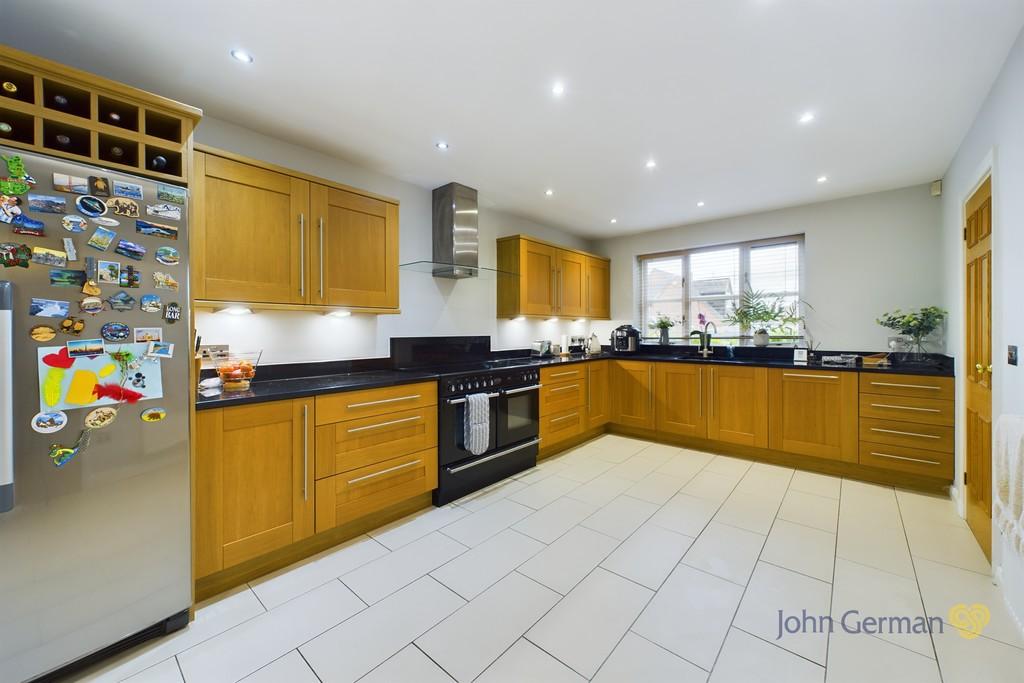 The kitchen is a generous size and is fitted with contemporary appliances. The kitchen comprises matching oak wall and base units, Rangemaster cooker with cooker hood above, plumbing for washing machine, integrated dishwasher and space for American style fridge/ freezer.