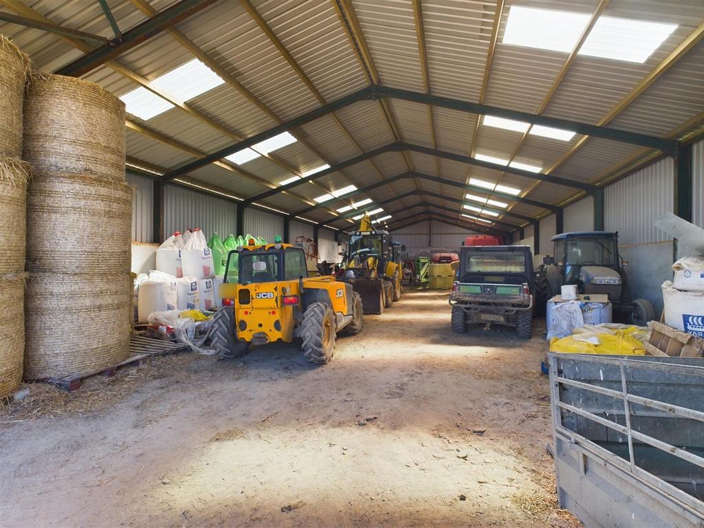 Behind the steading are three interlinked open-span sheds, suitable for housing up to 500 sheep. Additionally, there is a large workshop, and feed store. The approximate dimensions and construction details are as follows: