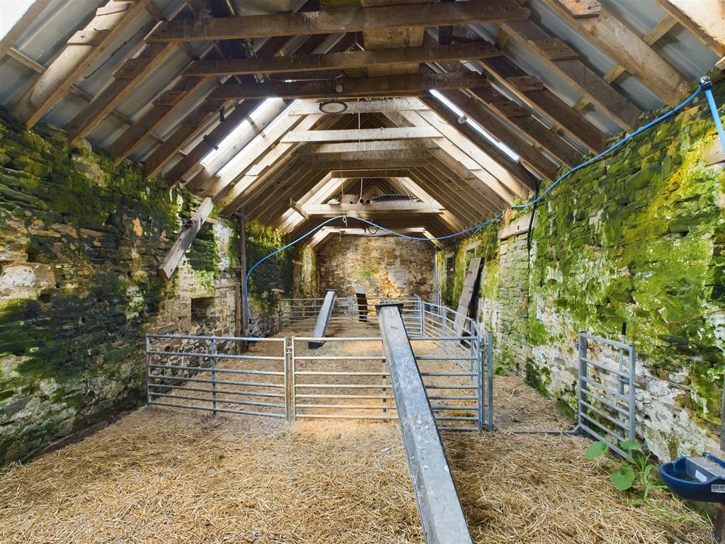 2. CATTLE COURT / BYRE ONE (7.43m x 23.38m). Centre scrape passage with pen sections. Internal feed section along the side of the building fed via byre two.