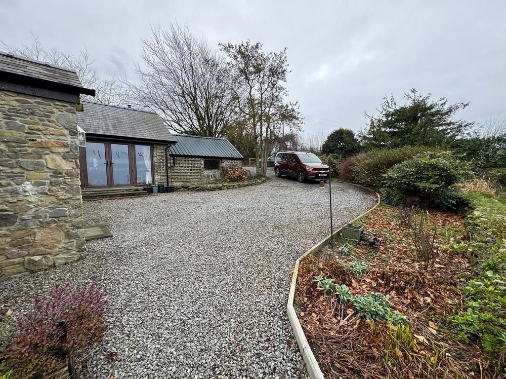 The property is approached via a private gravelled lane which serves a total of 3 properties with Bryngog being the last property accessible from the track. The track leads to a large gravelled forecourt area with side access to the adjoining paddock and continuing gravel driveway leading to the front of the main dwelling and access to: