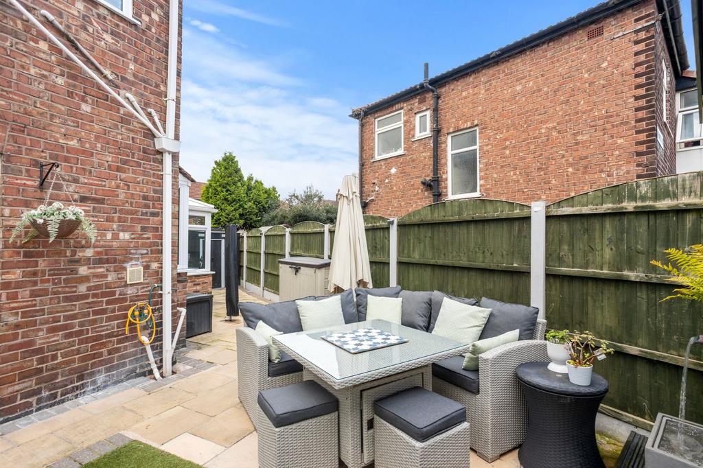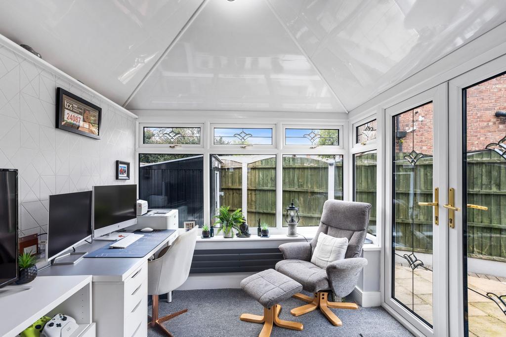 This property offers a desirable corner plot, featuring a wrap around garden that provides a variety of outdoor amenities. The garden includes a patio area perfect for outdoor dining and relaxation, along with low-maintenance artificial turf. Additionally, there's a versatile garden room, fully equipped with electrical connections and hot and cold running water, making it an ideal space for a home office or studio. The front of the property boasts convenient driveway parking, accommodating at least two vehicles, adding to the overall appeal and practicality of this home.