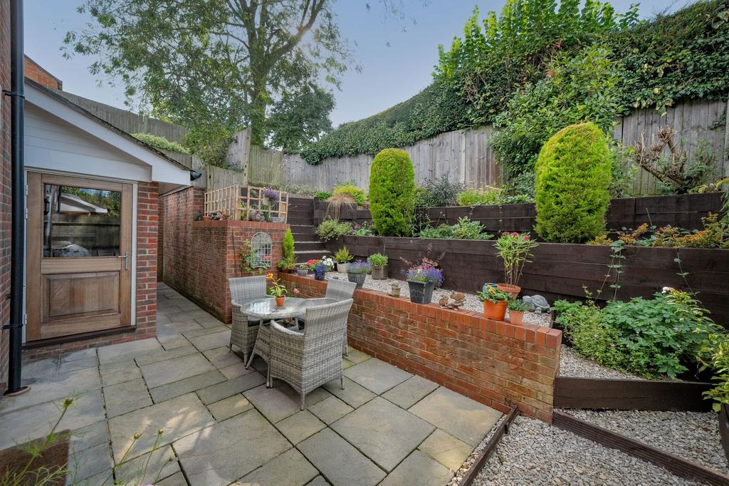 Outside, the tiered garden is a standout feature. It provides an excellent space for outdoor activities, gardening, and relaxation. The tiered design allows for multiple garden zones, including a patio area for al fresco dining and entertaining.At the front, a driveway and garage provide secure parking and extra storage.