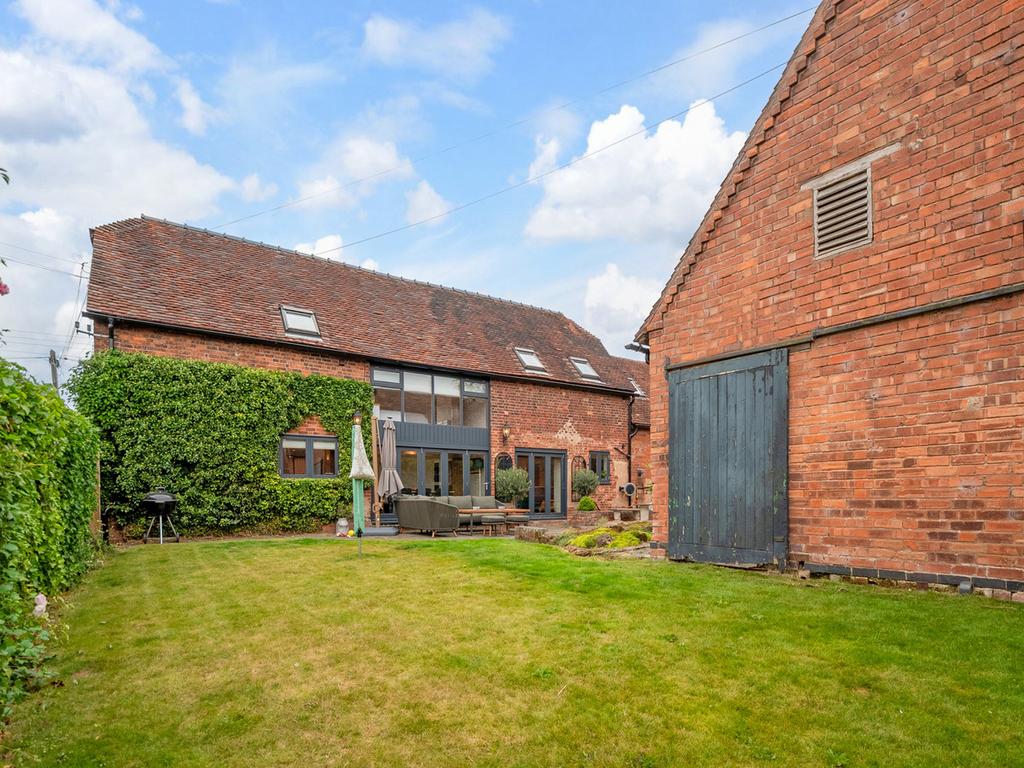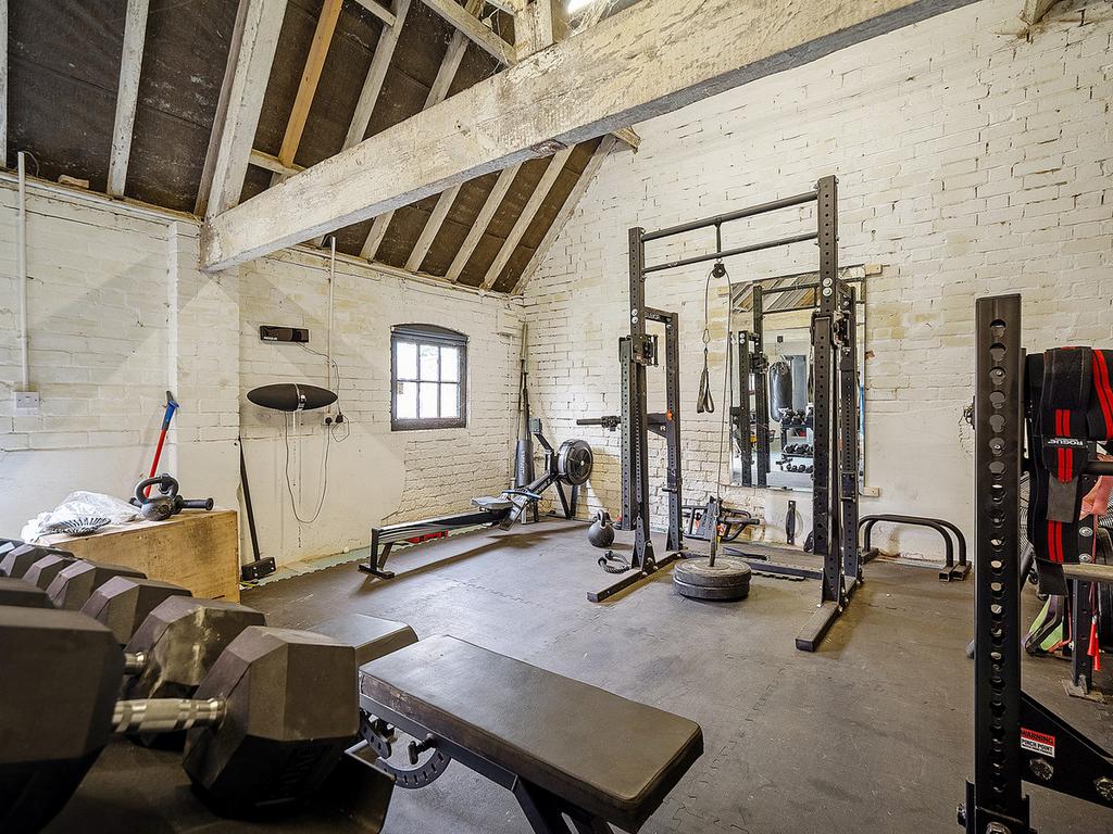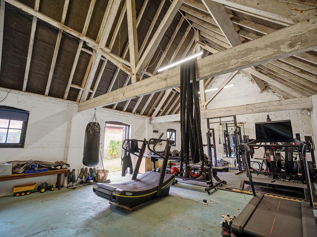 Across the garden, a second barn stands with equal charm. This structure presents an exciting opportunity for conversion into additional living space or a home office. With its exposed beams, high vaulted ceiling, and charming arched windows, this barn offers endless possibilities. It’s already equipped with full electrics and an alarm system, making it versatile for various uses, including an annex, for which planning consent is already in place.