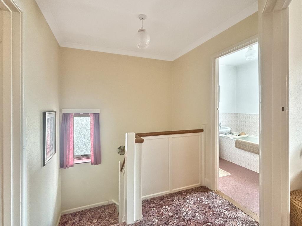 Double glazed obscure, low level WC, wash hand basin and panelled bath.