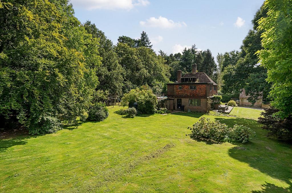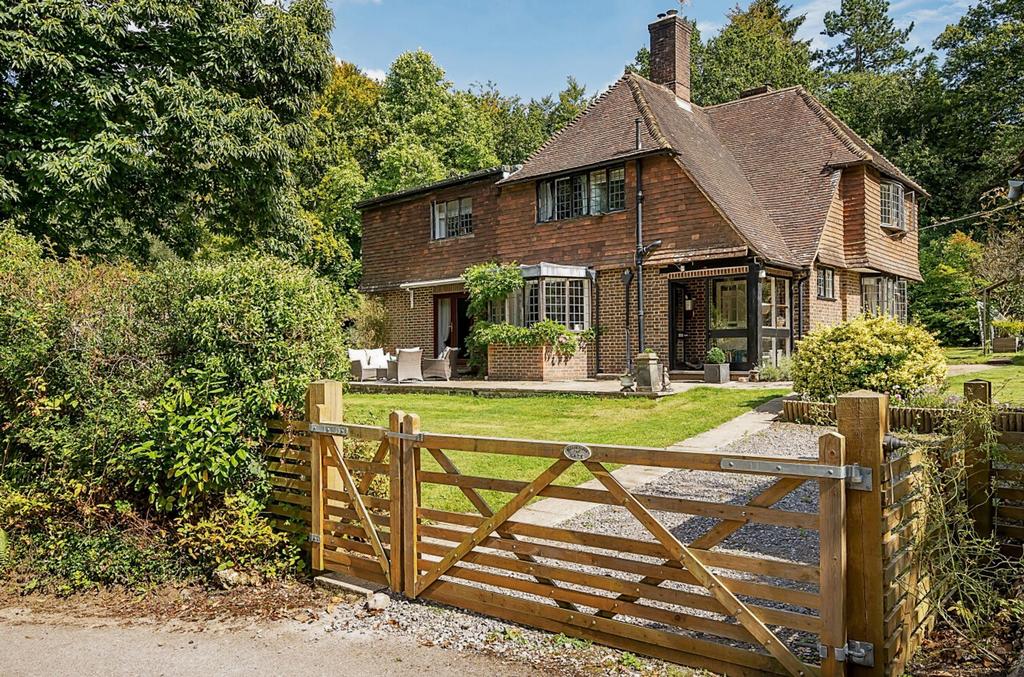 The property is situated in the desirable private estate of Durford Wood which comprises a collection of established country houses, located to the north of Petersfield and set within approximately 300 acres. The Cottage is the original cottage to ‘Durford Court’ a Lutyens-style country home. The property is approached via a long, sweeping driveway that leads to the house, detached double garage and parking. Adjacent to the house there is great entertaining area with an outdoor kitchen/bar, above ground swimming pool with raised sun deck as well as various outbuildings, sheds and a greenhouse. The gardens are an incredible feature of this wonderful home offering several mature trees, including apple and plum, mature bushes, colourful hydrangeas and lightly wooded areas great for children to play, providing much privacy and extending in all to approximately 1.6 Acres.