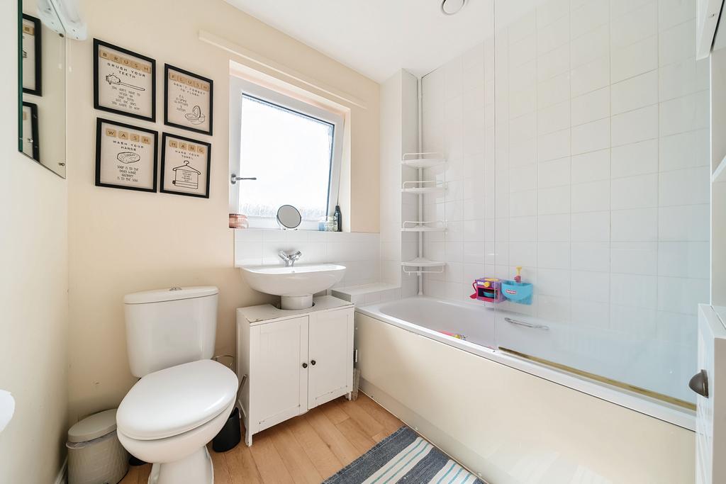 Upstairs, there are three comfortable bedrooms, with a wardrobe to the master. The bathroom has a modern, white suite.