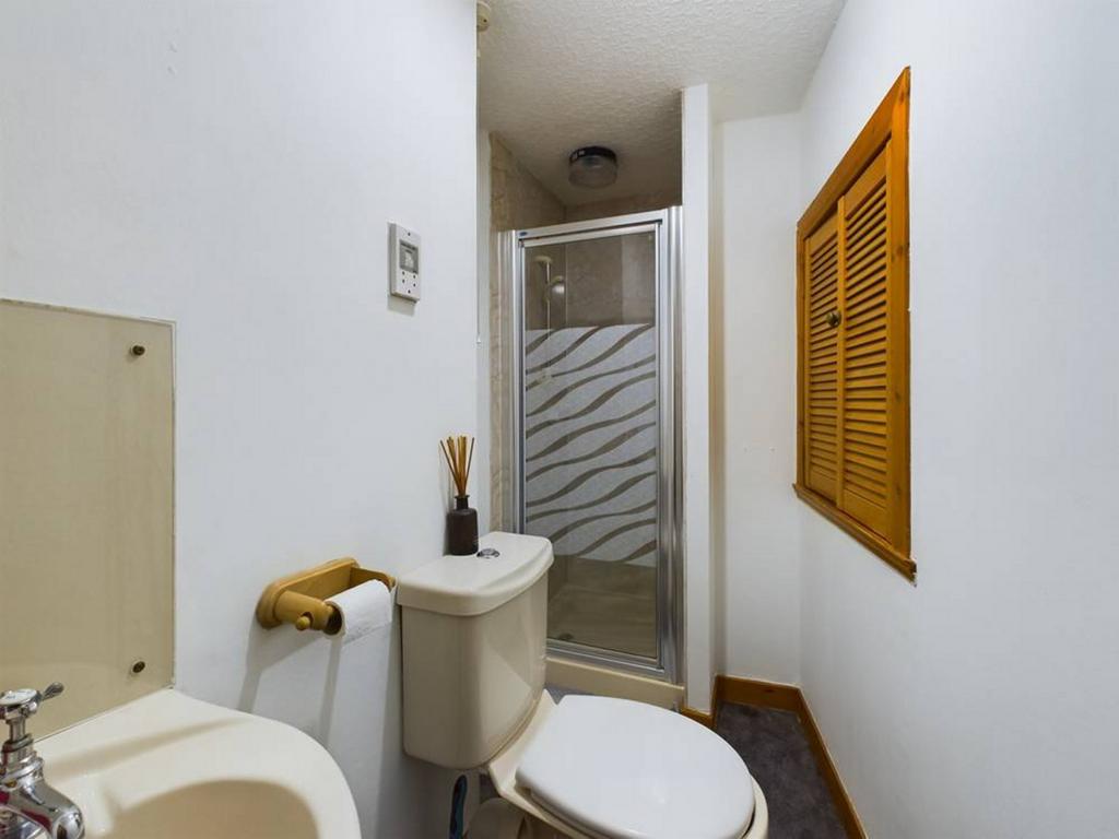 Moving up to the first floor, you'll find a shower room equipped with a shower cubicle, WC, and sink.