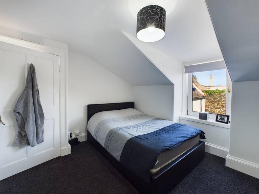 Completing the accommodation on the upper floor is a generously proportioned bedroom with a double wardrobe, built-in cupboards, soft carpeting, and two large Velux windows.