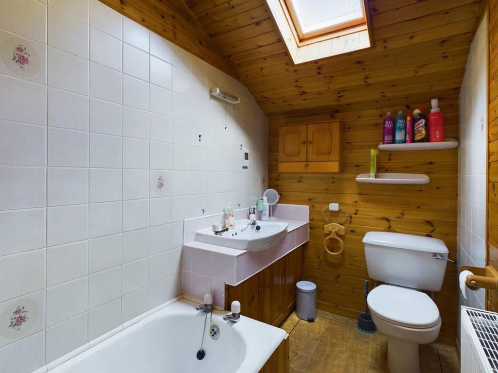 The bathroom on this floor includes a bath, WC, washbasin, and a Velux window for natural light.