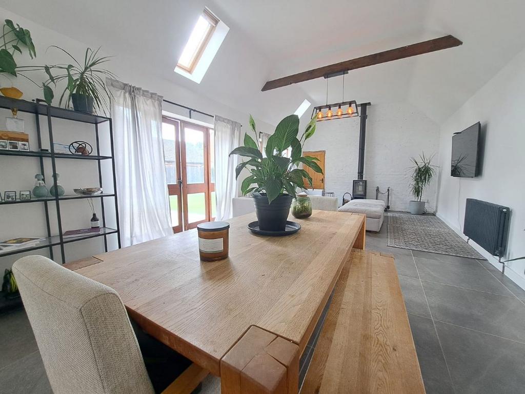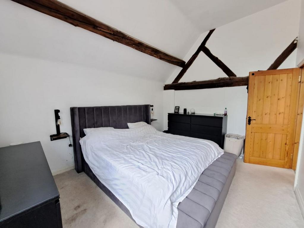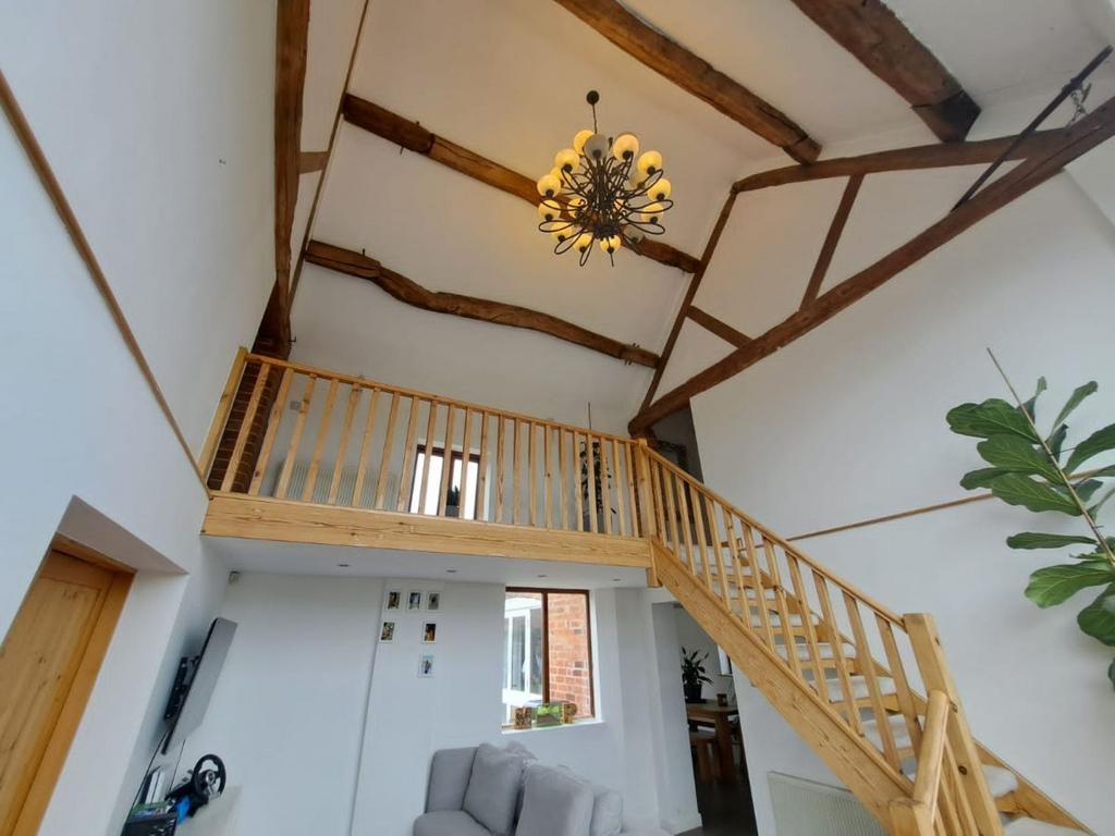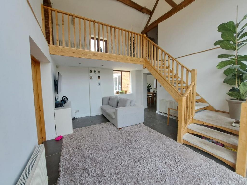 Oak Barn has been thoughtfully modernised in part, with select rooms offering the chance for new owners to add their personal touch. The property retains its original charm with exposed beams and high ceilings, complemented by double-glazed wooden framed windows and doors that open onto the garden.