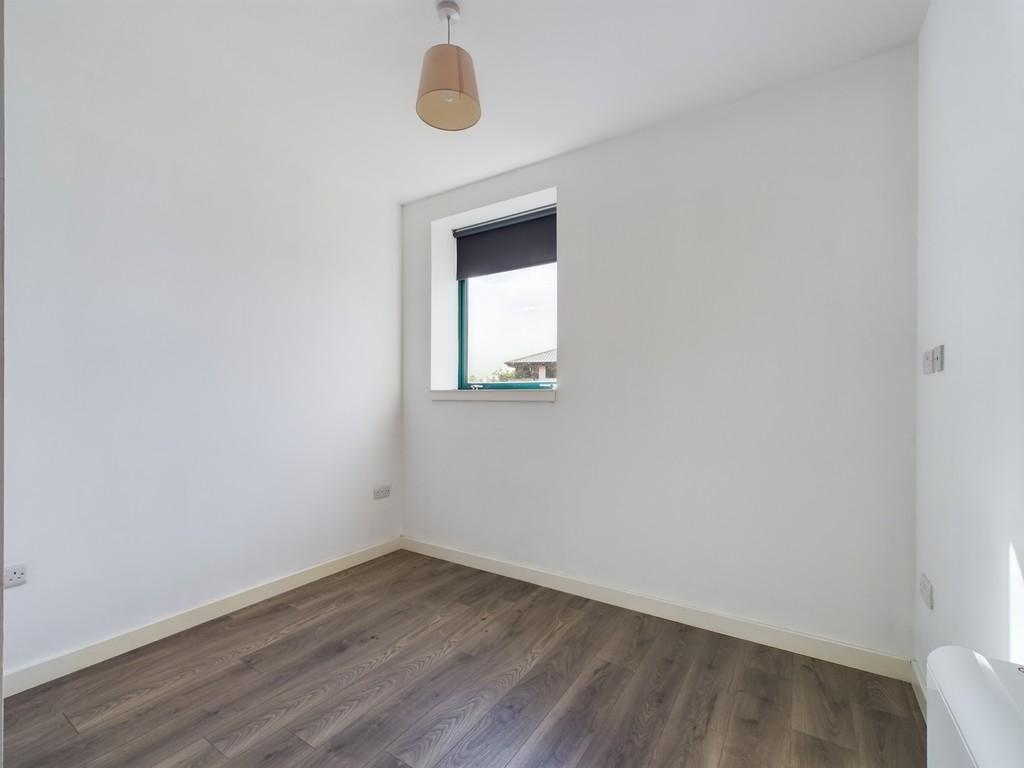 The bedroom is neutral and modern, allowing plenty of space for a double bed and furniture, and again with lovely big windows.