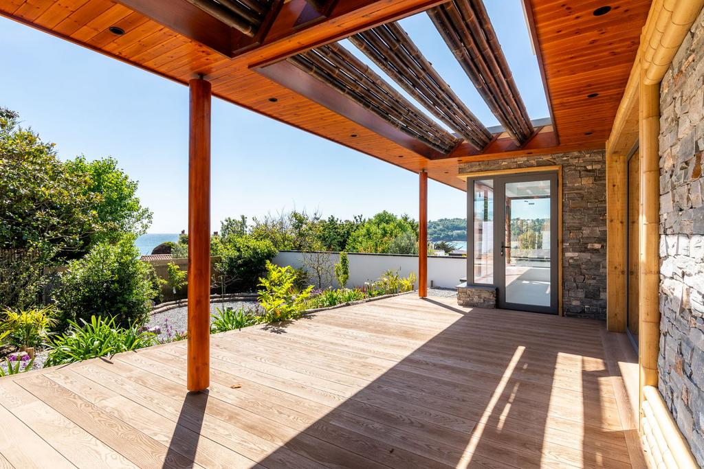 Situated in Jersey's most sought after location, High Trees is a triumph of design (Paige Architects) and execution to the finest detail by Fir-Pine Developments. With wonderful views of the bay from the spacious terrace and the main bedrooms, and private gated access to the promenade/beach this house is one of only a handful of houses that can boast this in St Brelade's Bay. Measuring 4,000ft2 this stunning home offers an extremely versatile layout with in the main house 4 bedrooms two of which are suites with dressing rooms, the main living area seemlessly flows from kitchen to dining to living to terrace to snug, the whole southern aspect offers glazed doors to the large covered terrace that will be a fantastic extension of the house. In addition to the main house is a separate two bedroom home, that is finished to the high exacting standards of the main house, ideal for family, guests, staff member or even an Air BNB! This stunning property must be seen to appreciated the meticulous attention to detail, if it is the symmetry of the master bedroom tiling, the specification of the aluminium double glazing, the Lutron lighting system, the landscaped Japanese themed garden or even the craftsmanship of the vents in the exterior hardwood fascias this impressive home exudes quality, luxury and finesse. A truly perfect home for beach life whilst providing for high end entertaining whilst residing in the island's No1 location.