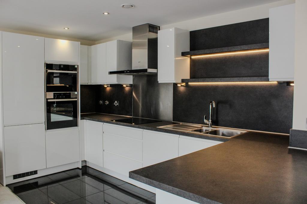 The open-plan kitchen, dining, and living area is the heart of the home, perfect for entertaining and relaxation. With sleek, contemporary finishes and large windows, the room offers plenty of natural light, creating a warm and inviting atmosphere. The modern fitted German kitchen is fully equipped with high-quality integrated appliances including NEFF branded Fridge Freezer, Washing Machine, dish washer, cooker hood, hob & oven. The kitchen also benefits from stylish modern worktops with splash backs, plenty of storage space, stainless steel sink and drainer.