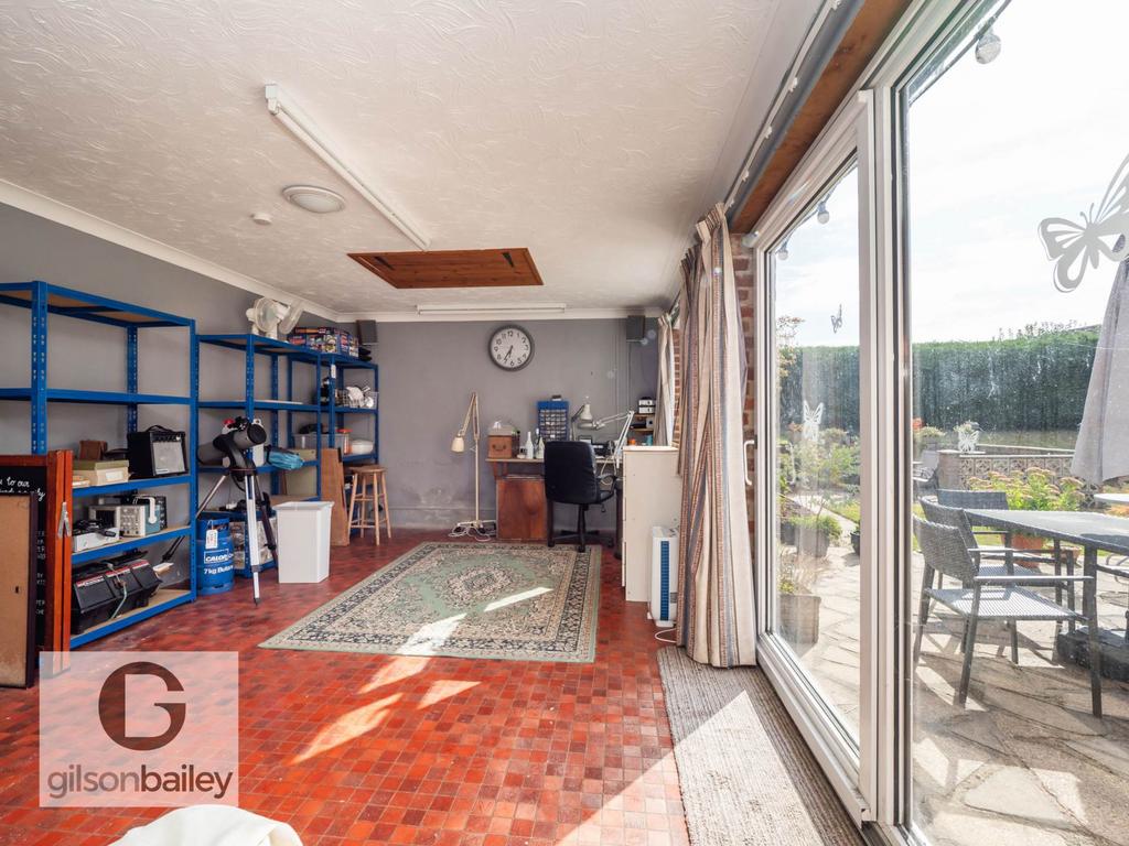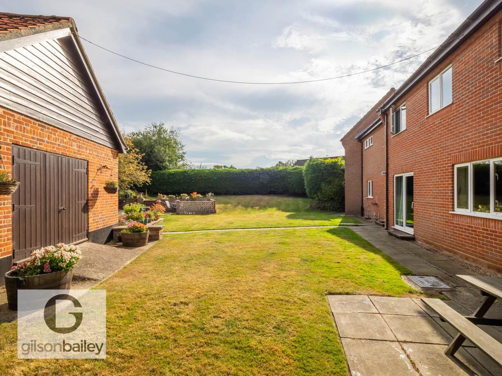 The expansive rear garden provides a tranquil retreat, perfect for outdoor activities and relaxation being mainly laid to lawn with raised beds, a range of bushes and shrubs, a patio area with a brick built bbq and of course the fantastic out building.
