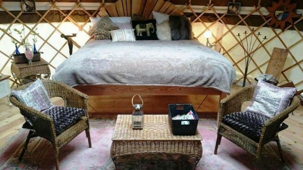 An additional plot of land, which adjoins the gardens to the north, has its own oak gated entrance from the lane, provides a wonderful setting for the beautiful Yurt, which has generated an excellent holiday let income. The yurt has a large 20ft diameter hand-made solid ash frame and raised floor, oak doors and window and is remarkably comfortable and very stylish indeed. There is a solid ash super king-sized bed, a solid ash insulated raised floor, a wood burner, fridge, power and lighting. There is a separate luxurious shower room adjacent to the yurt within a new summerhouse with shower, WC, Victorian-style wash hand basin, electrically heated towel rail, automatic lighting and Megaflo hot water system.