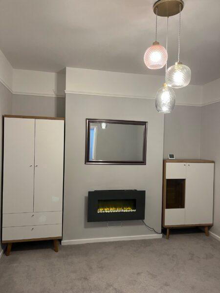 This bright and airy studio has been fully renovated and features a brand-new boiler and central heating system. Upon entry, a hallway leads to the open-plan living and bedroom area, complete with a charming feature electric fireplace and a window overlooking the well-maintained communal garden.