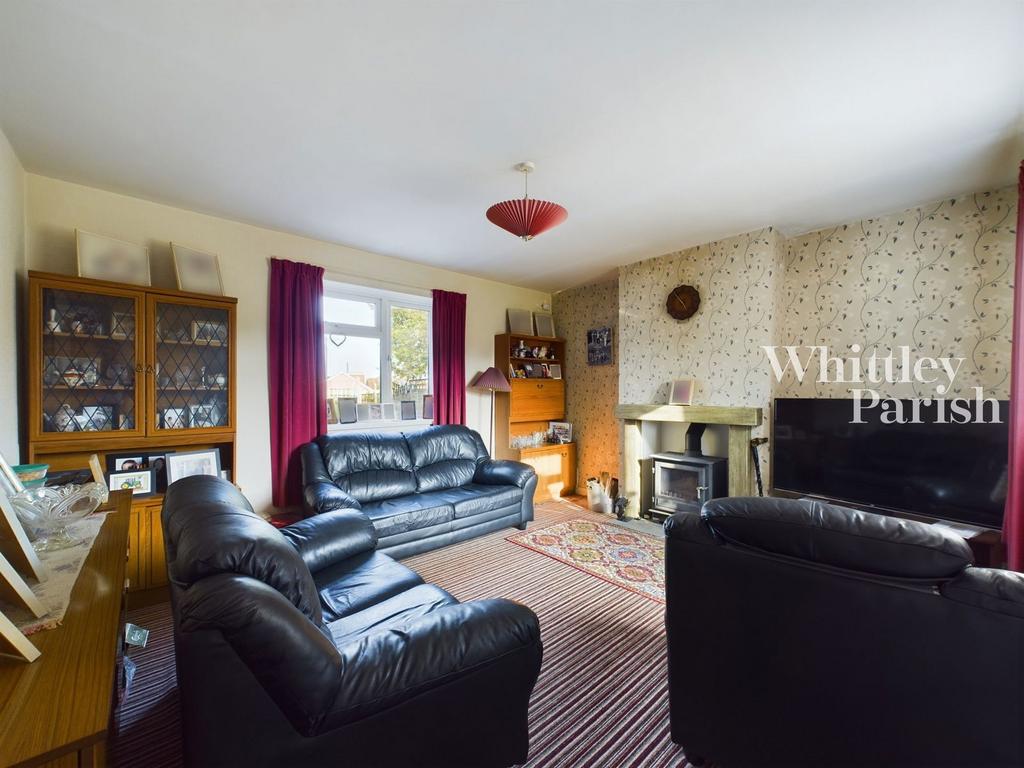 Having double aspect to front and rear being a bright and spacious room with fireplace and working wood burner to side.