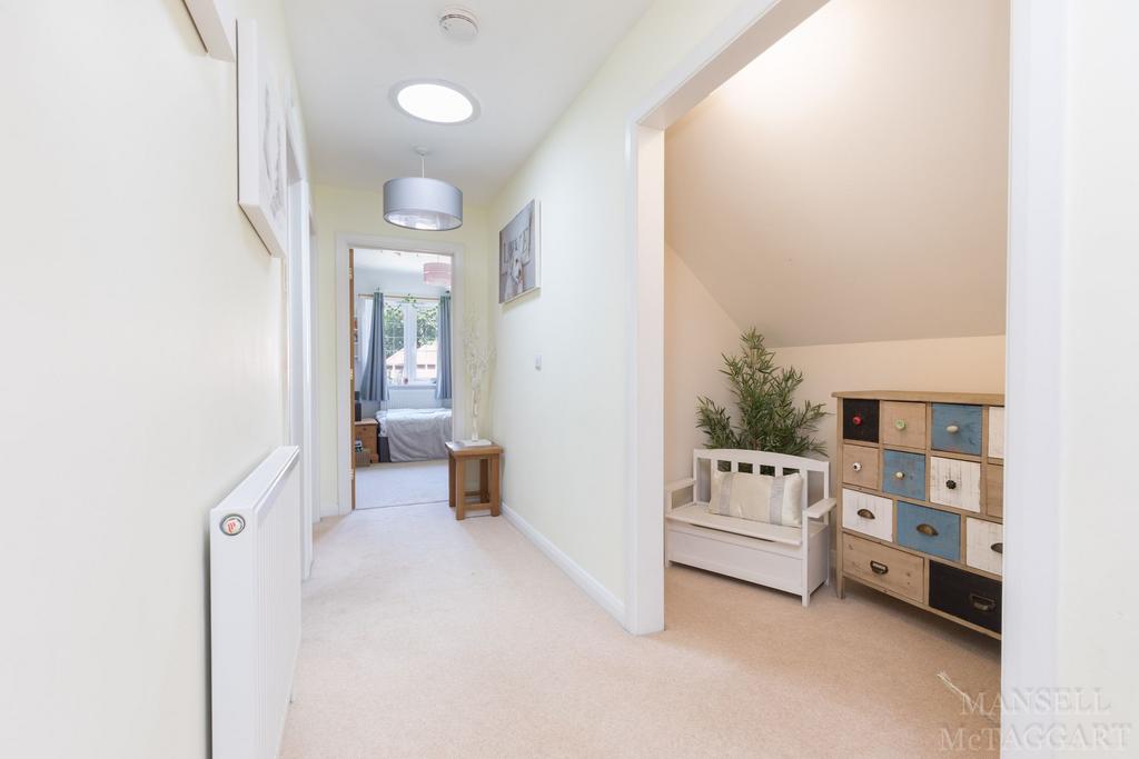 Bedroom 2 is also to the front of the house and is a good size double again with built-in wardrobes along one wall with four doors of which the middle two are mirror fronted. Along the corridor, to the right, is an alcove which can provide a seating area and additional storage space with eaves storage behind which is accessed from the bedrooms.