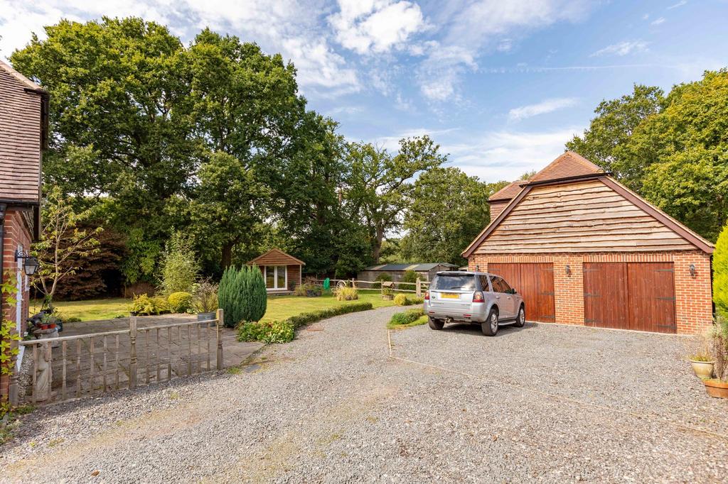 The long driveway provides off -road parking for 5-6 cars and leads to a double garage with a tack room to the rear. This has a sink and drainer, work surfaces with cupboards below and a window to the side. There is space and plumbing for a washing machine, a fridge/freezer and the boiler is located here. An outside staircase leads to the annexe accommodation which consists of a bed/sitting room with a kitchen area and a separate bathroom which has a white WC, wash hand basin and shower cubicle. The outside balcony has a superb view across the lawn, the fields, the stables and the sand school.