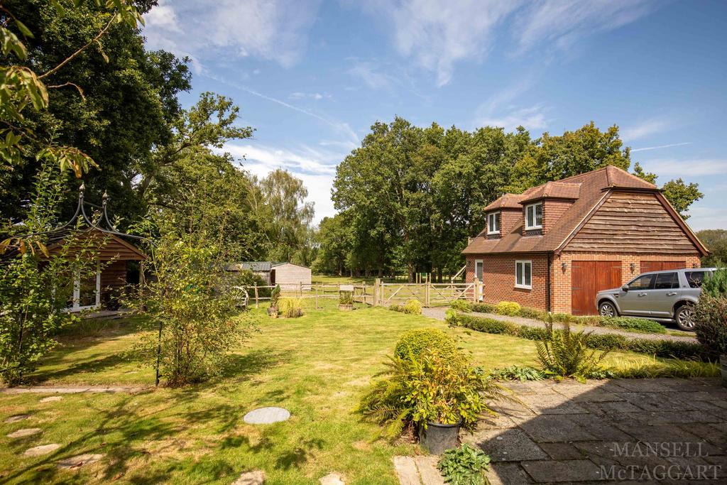 A wide pathway sweeps across from the drive to a double 5-bar gate which opens onto a vast expanse of lawn and the 4 fields set within the plot of approximately 6 acres (tbv). Over to the left is the larger of the two stable blocks for at least seven horses with a feed room to the side and hay/storage area to the rear. There are stables for two more horses across the field to the right in a former piggery and ahead is the sand school. A delightful location with excellent provision for horses and land for the whole family to enjoy.