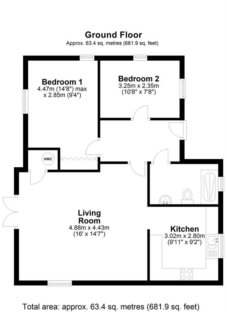 Bedroom 1 - 9'4" (2.84m) x 14'8" (4.47m)