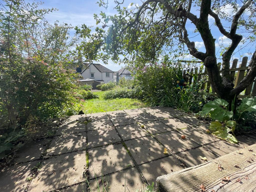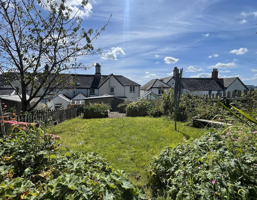 The enclosed courtyard is crazy paved with a gate to the side access and steps up to another paved terrace, a perfect space for enjoying the sunshine. There is a gate to the main garden (across a small right of way for neighbouring properties). The main garden is a good size and mainly laid to lawn with a greenhouse and some raised beds for growing vegetables. At the end of the garden is a useful timber shed and paved patio shaded by a beautiful mature apple tree. The garden then backs onto neighbouring fields, the adjacent one is currently home to several sheep.