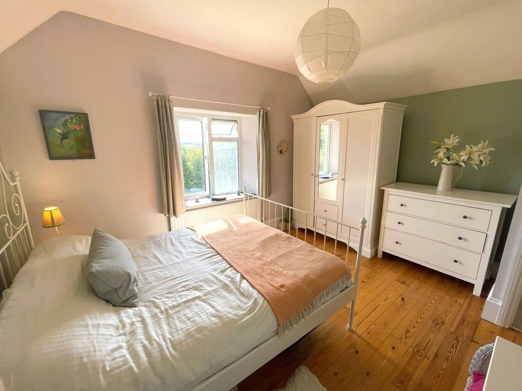 Double glazed window to front with slate sill and views over the town and countryside, radiator, light and power points, polished wooden floorboards.