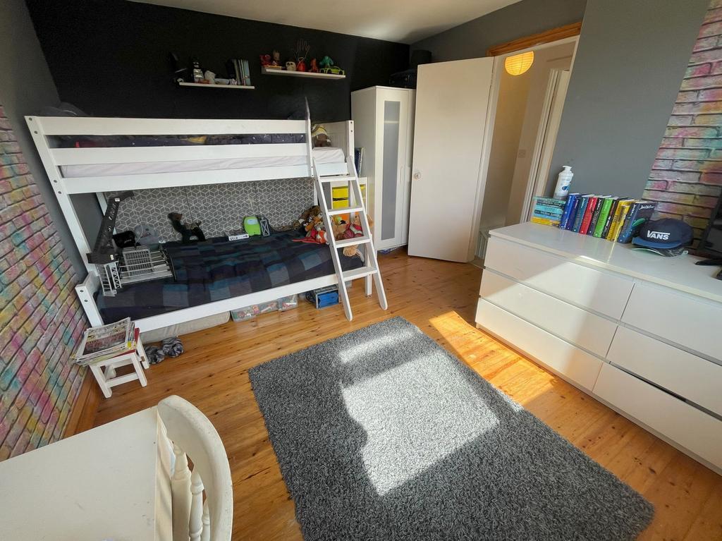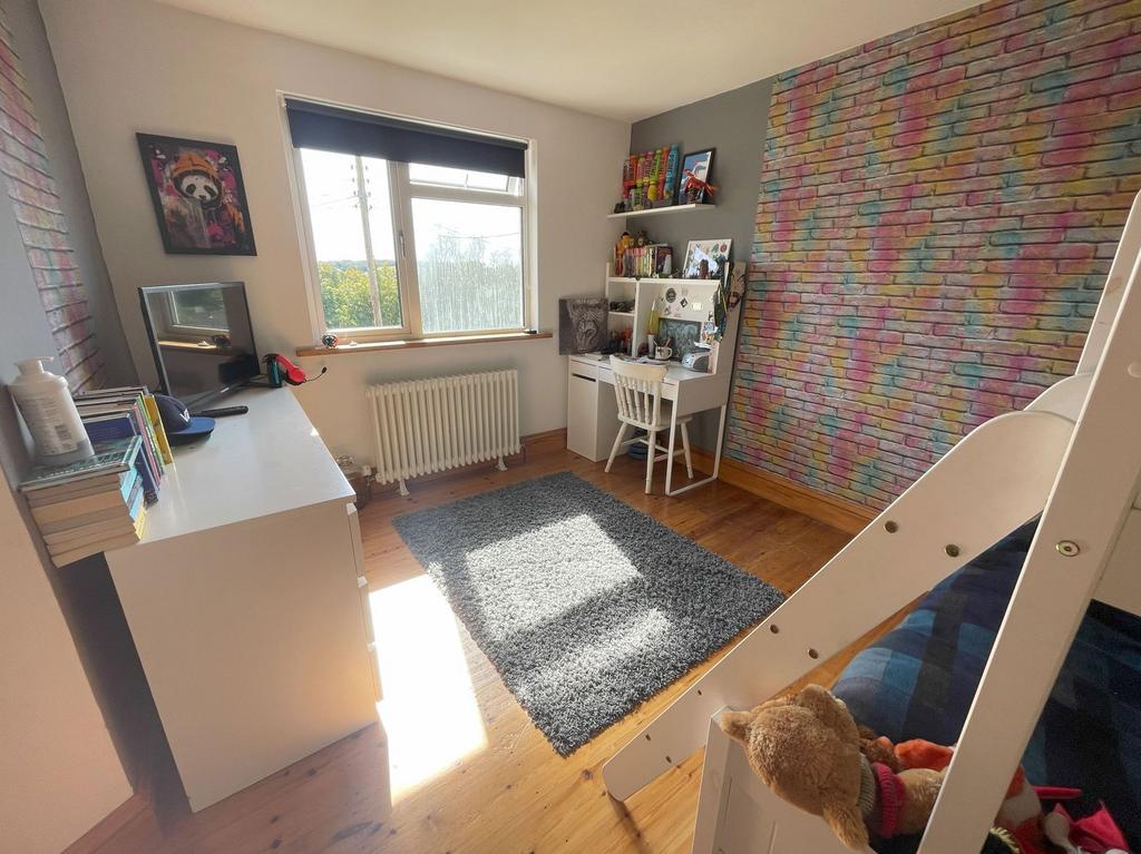 Double glazed window to rear with deep sill, radiator, light and power points, access to loft space, painted wooden floorboards.