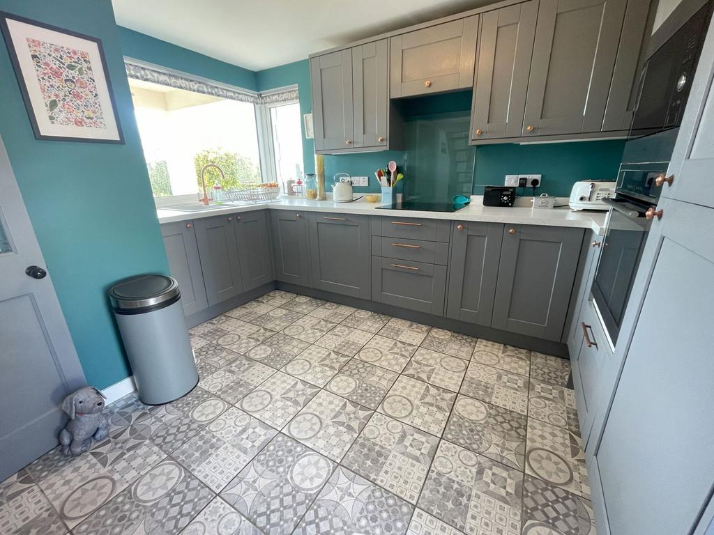 Re-fitted with a range of 'Howdens' eye level and base units with a worksurface over incorporating a sink and drainer unit with mixer tap over, 4 ring induction hob with extractor over. Eye level electric oven with integrated microwave above, integrated dishwasher and fridge freezer. Tiled floor, radiator light and power points. A feature double glazed window to the front with far reaching views and a double glazed door to the courtyard which is a real sun trap!