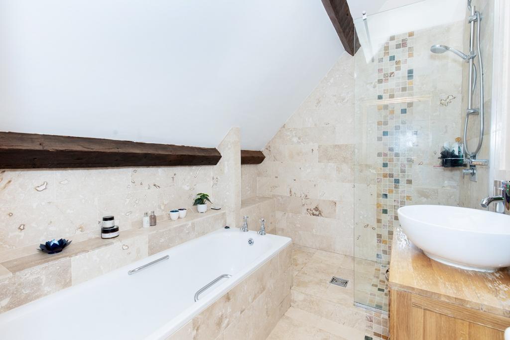 This Grade II apartment with Victorian period features is set over two floors and is beautifully presented and furnished. The open plan sitting/living room is spacious and light and bright with two stone mullion windows, a comfy seating area with television and dining table and chairs. The view from this room over looking the grounds with the countryside beyond is fabulous. Up a few steps from the living room is the well-appointed kitchen with gas hob, double oven, fridge/freezer, dishwasher, washing machine and a tumble dryer. There is a WC on this level under the stair case which leads to the second floor. The bedroom with king-size bed has generous proportions and is set into the eaves with exposed beams. There is a walk in wardrobe and plenty of storage plus a good sized en-suite bath/shower room with separate WC.