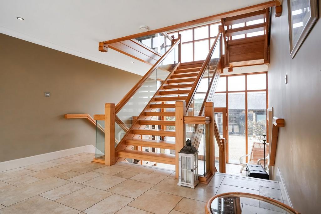 The house is centred around an impressive open plan reception hall with bespoke Oak and glass staircase with architectural picture windows to two aspects. Thoughtful design elements throughout ensure the house is flooded in natural light creating a very pleasant ambience to the reception rooms and bedrooms.