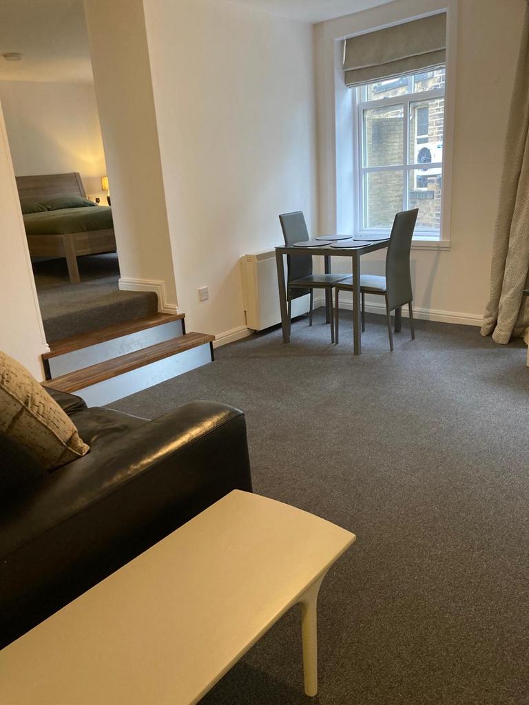 Furnished First Floor Apartment Situated in Keighley Town Centre. Having entrance hall, living area, 1 bedroom, fitted kitchen and shower room. The property is located in a private gated courtyard within a development of similar apartments with all local amenities close at hand.